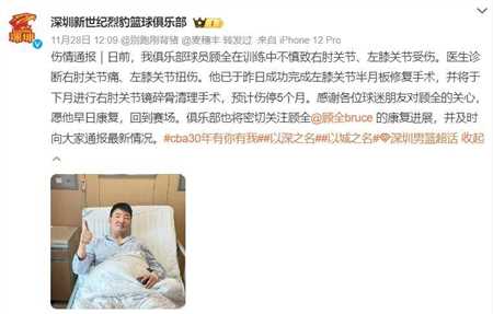 顾全,近日完成了左膝关节半月板修复手术,预计伤停5个月,基本确定本赛季报销......