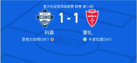 北京时间11月30日科莫vs蒙扎,恩格尔哈特得到全场最高的7.7分,马尔科-萨拉得到全场最低的6.2分