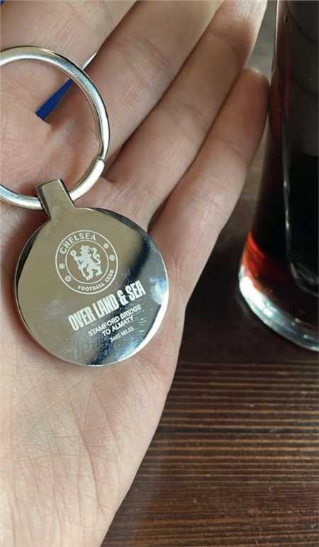 为了感谢这些不畏严寒、远赴重洋支持球队的忠实球迷,切尔西俱乐部精心准备了一款钥匙扣纪念品。这款钥匙扣上镌刻着切尔西的队徽,并刻有“跨越山海,从斯坦福桥到阿拉木图,3485英里”的字样,以此纪念球迷们的忠诚与勇气。