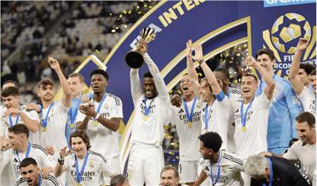 足坛这一夜进行了多场比赛。在世俱洲际杯决赛中,皇马3-0横扫帕丘卡,夺得冠军。帕丘卡这种球队总身价只有4565万欧元,与皇马高达13.6亿欧元的身价差距大得离谱。这样的对决没有任何悬念。皇马在第37分钟就收获进球。维尼修斯过掉门将,助攻姆巴佩推射破门。下半场罗德里戈远射破门扩大比分。最后时刻维尼修斯点球破门锦上添花,把比分锁定为3-0!皇马强势夺冠!
