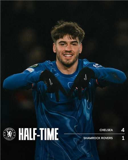 在欧协联联赛阶段第6轮的比赛中,切尔西在上半时过后主场4-1领先于爱尔兰球队沙姆洛克流浪,吉乌前45分钟就上演了帽子戏法,迪尤斯伯里-霍尔也有一球入账。