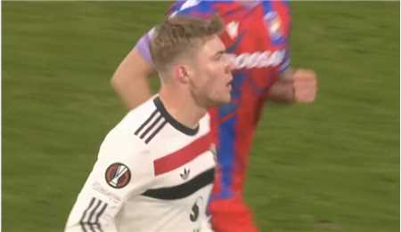 此役客场对阵比尔森胜利,霍伊伦在比赛第62分钟破门为曼联将比分扳为1-1。