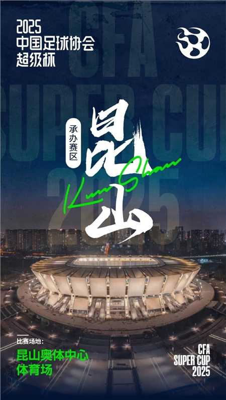 官方消息,2025年中国超级杯上海德比将于2月7日在昆山进行。