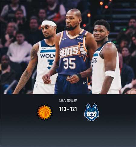 第四节太阳杜兰特拿下11分,森林狼亚历山大-沃克拿下11分,最终太阳113-121不敌森林狼