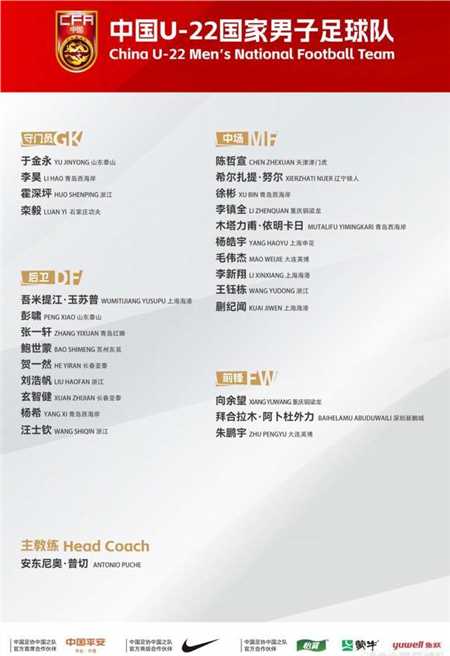 第三个,这次u22国家队的教练组也是非常豪华,绝对不输国家队。主教练是前国足主帅第一候选安东尼奥,当时18强赛中途,足协一度要让他接替伊万的,另外助理教练是黄博文,训练员于大宝,这都是中国新生代教练的佼佼者了!